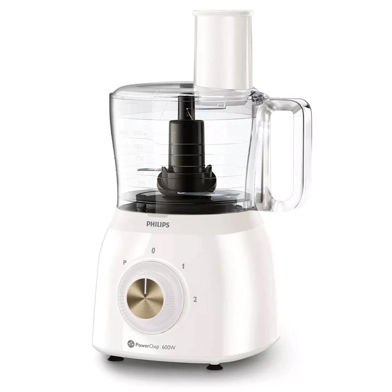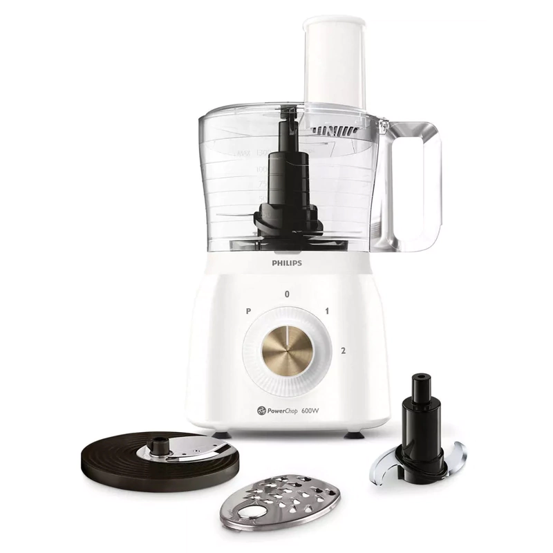 La Philips HR7615 combina un motor de 600 W con la innovadora tecnología PowerChop, que optimiza la forma de la cuchilla, el ángulo de corte y el recipiente para lograr un picado preciso en ingredientes blandos y duros, además de preparar purés o masas con facilidad.